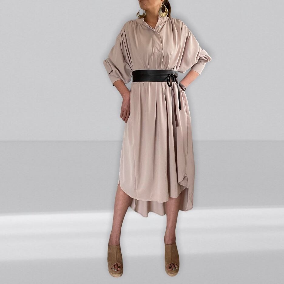 柔らかい合皮のサッシュベルトは留め具がないので、使いやすく、フロントやサイドで結ぶことでシンプルなコーディネートのアクセントになります。