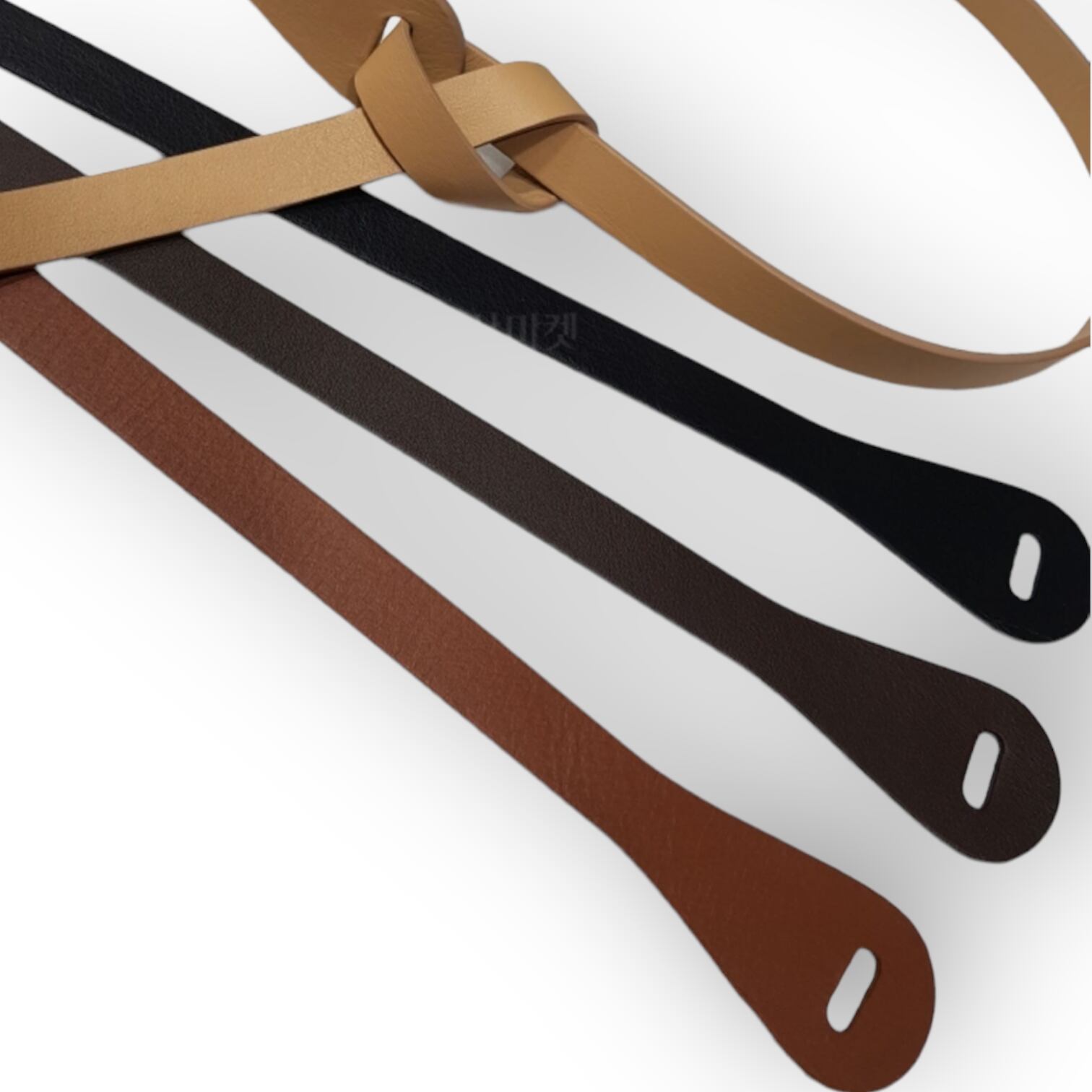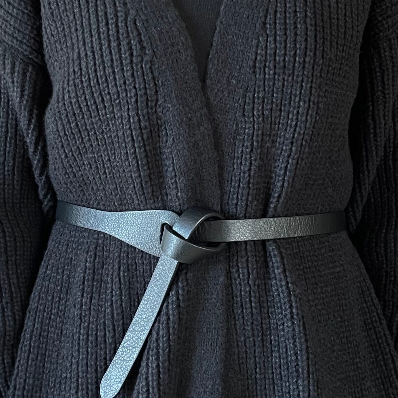 金具がないので、コーディネートに幅広く使え、穴を通すだけでも、結んでも綺麗に使えるシンプルなベルトです。