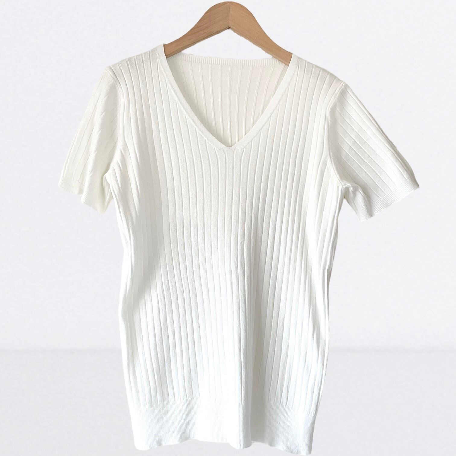 シンプルな夏のニットは、Vネックでスッキリと❤︎